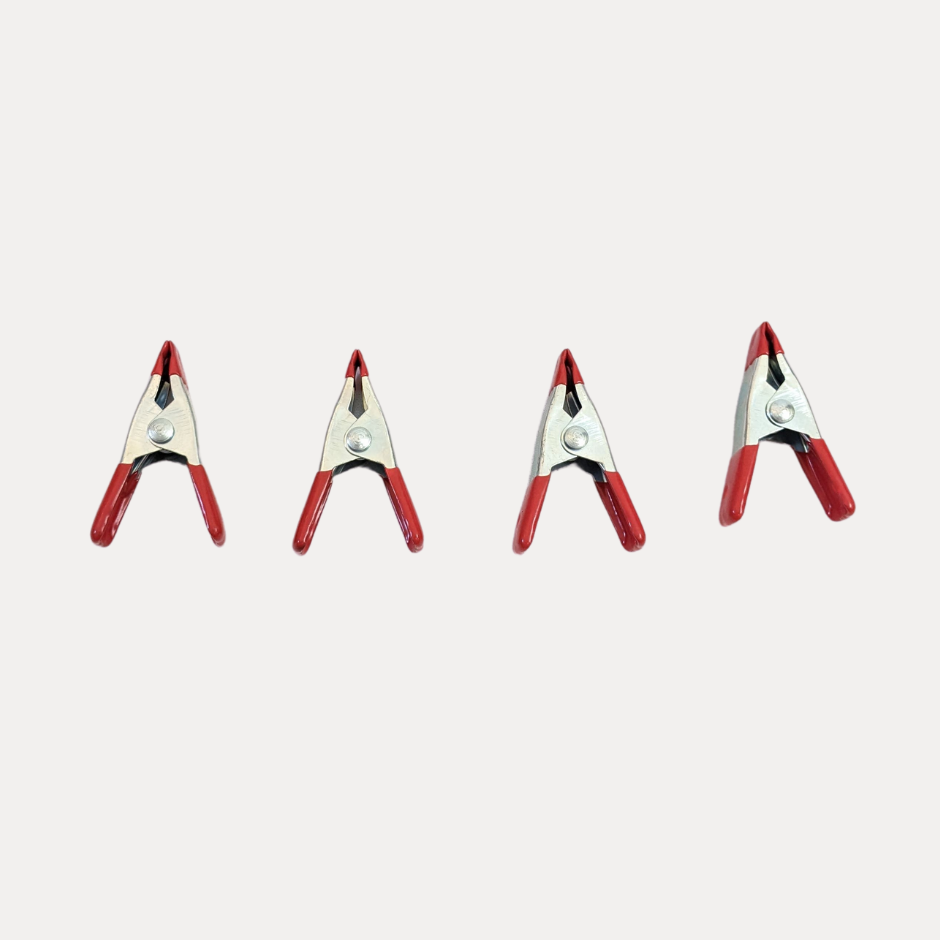4 × 2.5" Plastic Clamps – Lightweight but strong nylon clamps with steel springs for holding rims in place; color assortment may vary.
