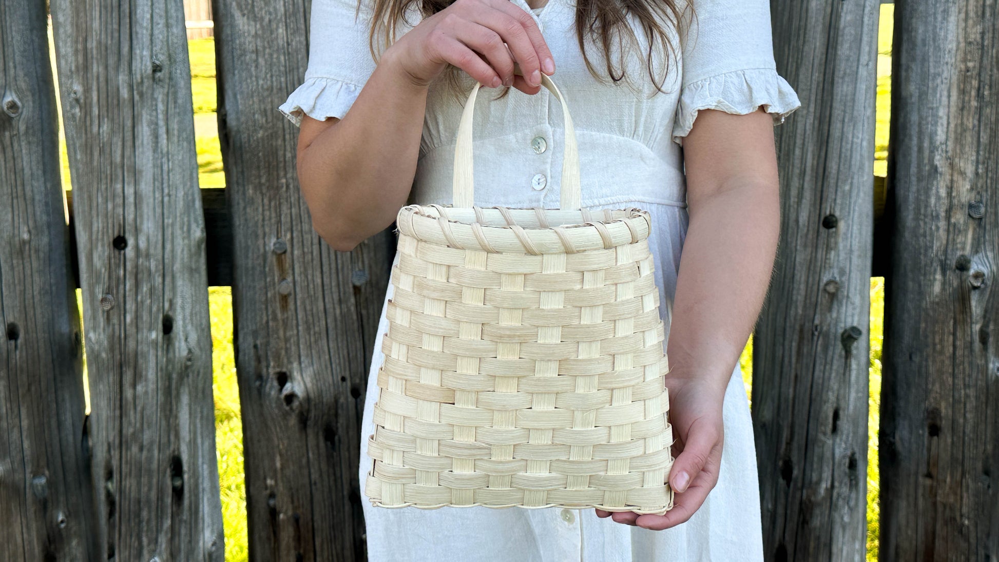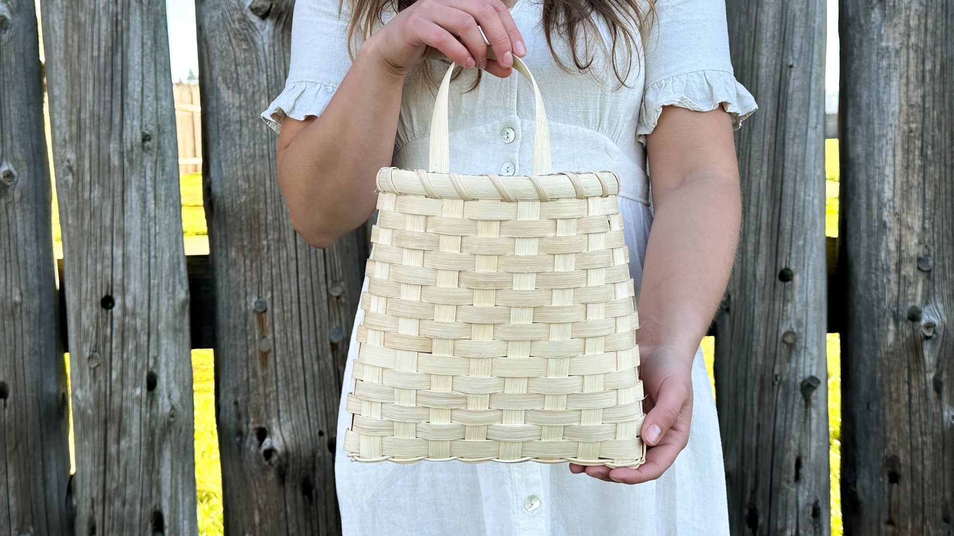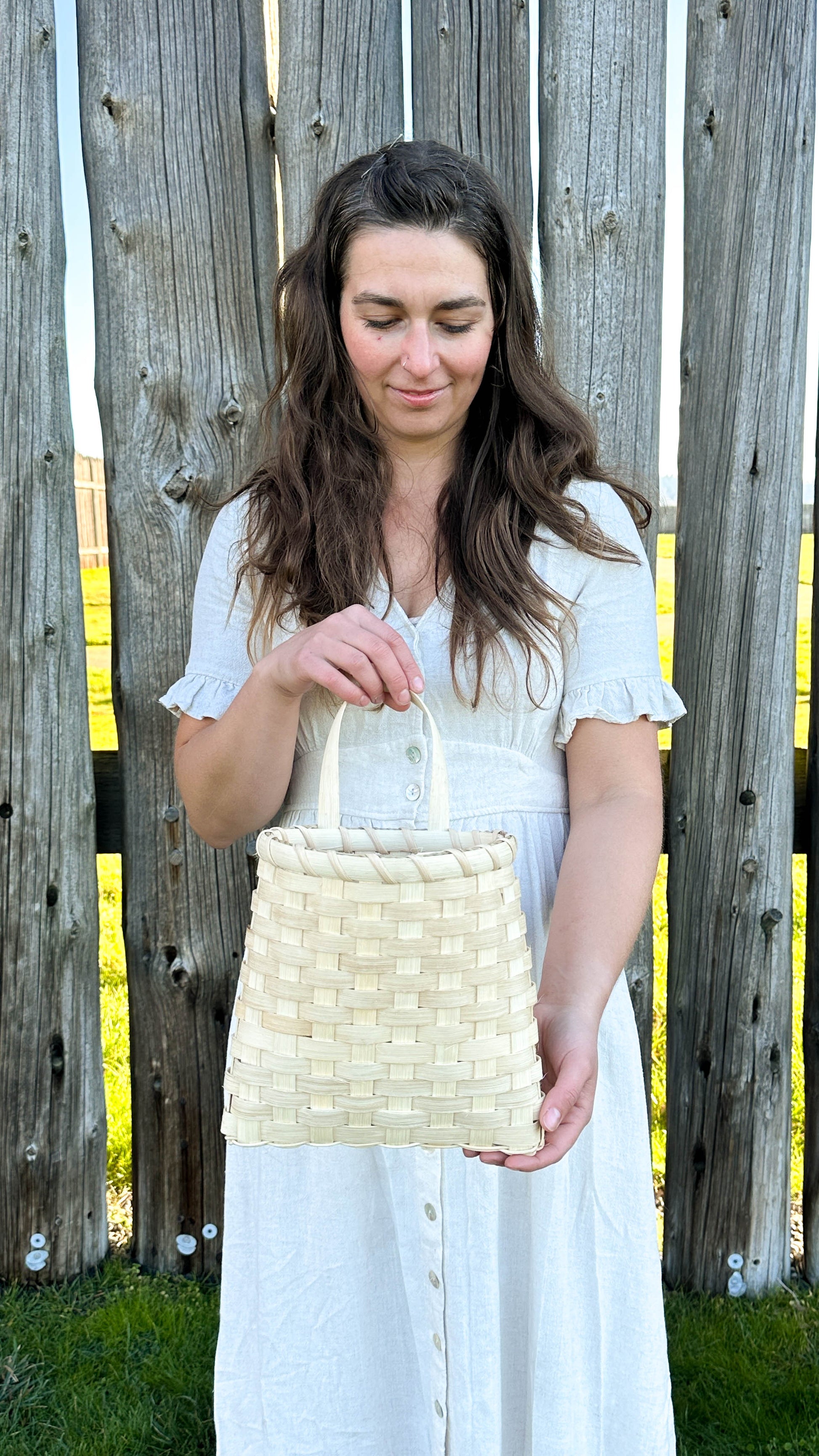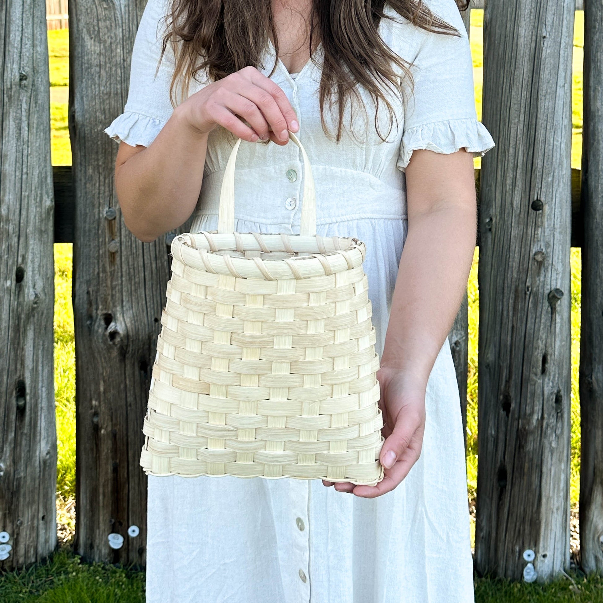 She features a clean flat weave and a loop handle designed to hang against a wall. Precise and intentional, her natural reed is a clean, bright tone that will only deepen and warm with time.