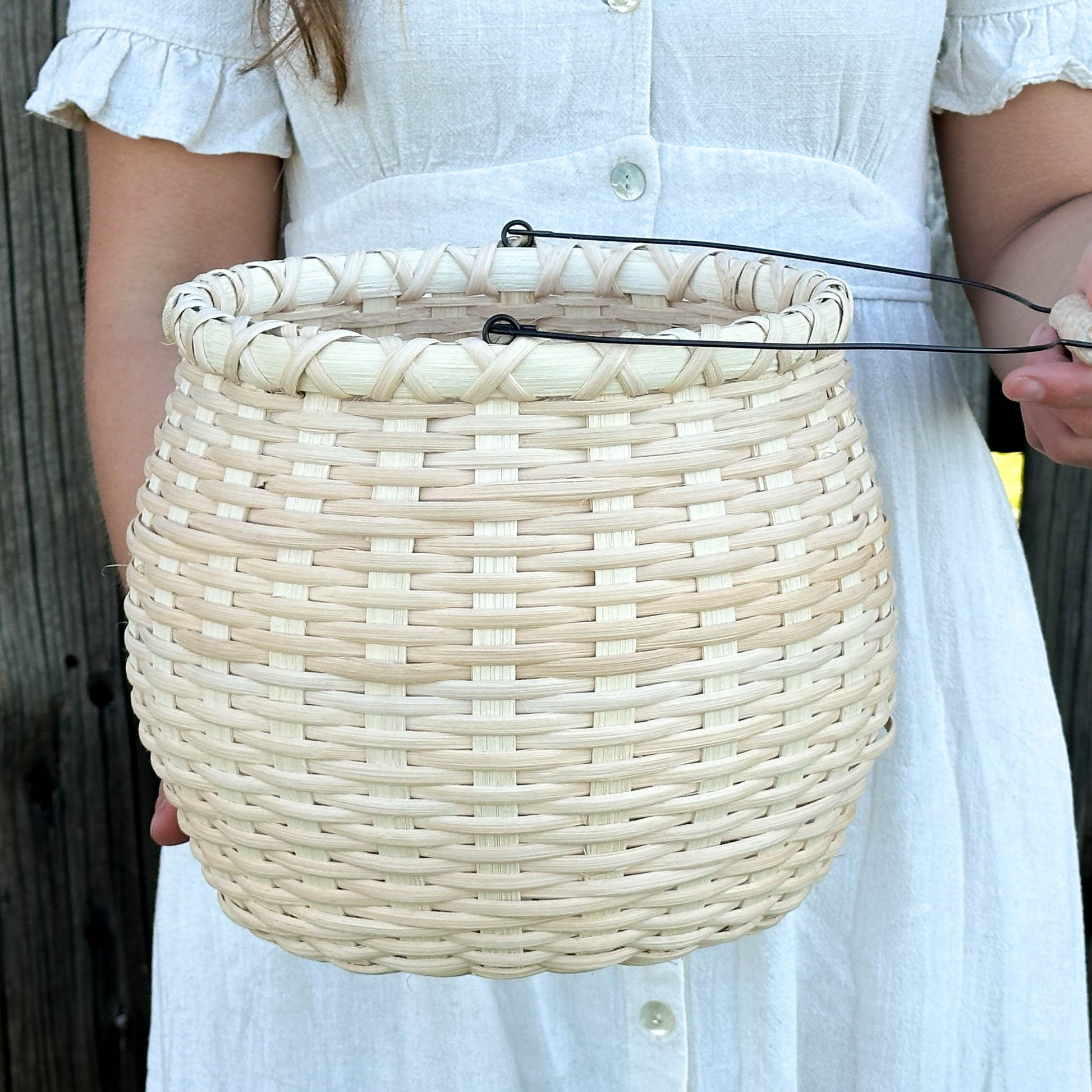 - Material: Sustainable rattan reed with a custom wire bail handle