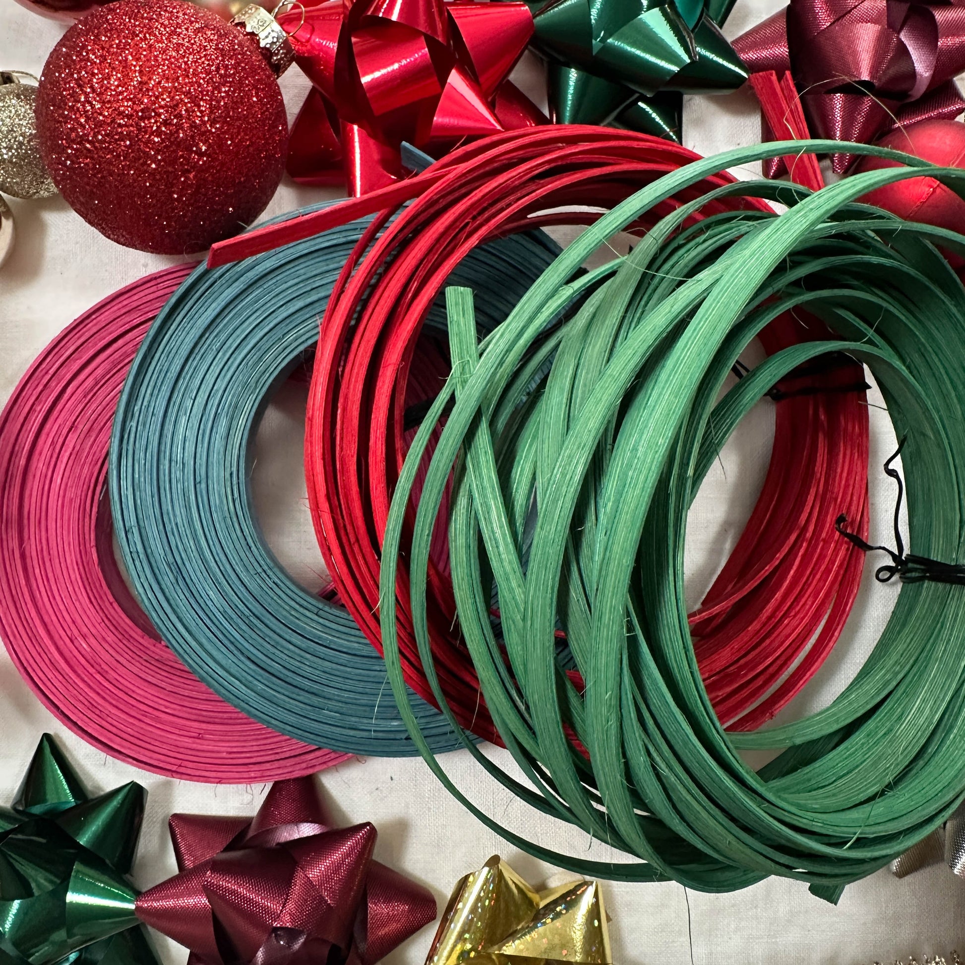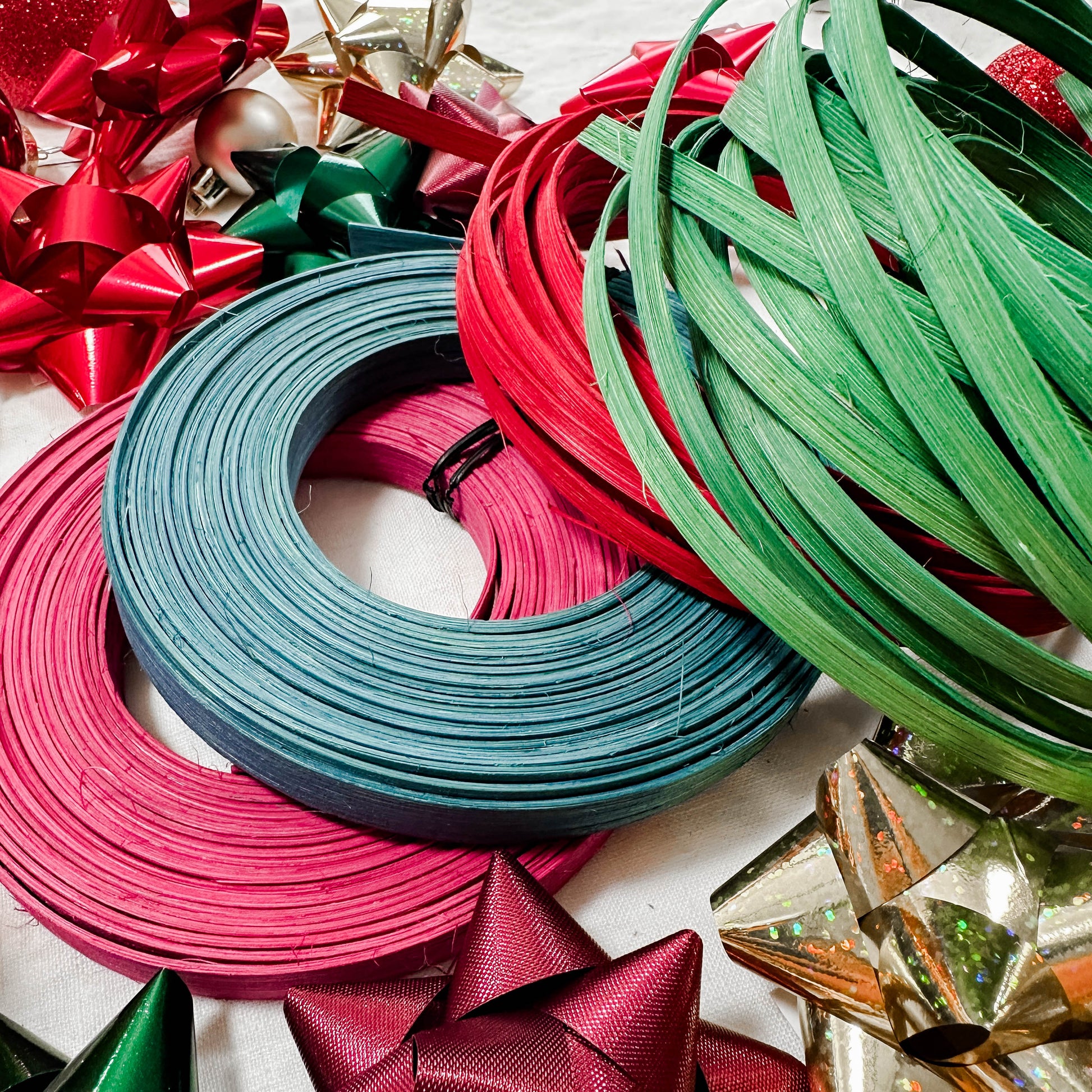 20 ft – ¼″ Flat Reed in Holly Green (vibrant holiday green)
