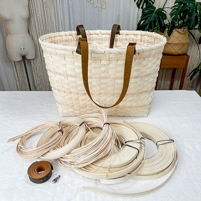 Our Randed Tote Basket Kit helps you create a strong, versatile basket you’ll be proud to carry and use. You’ll craft a roomy tote with a sturdy base, comfortable leather handles, and a striking randed weave pattern.
